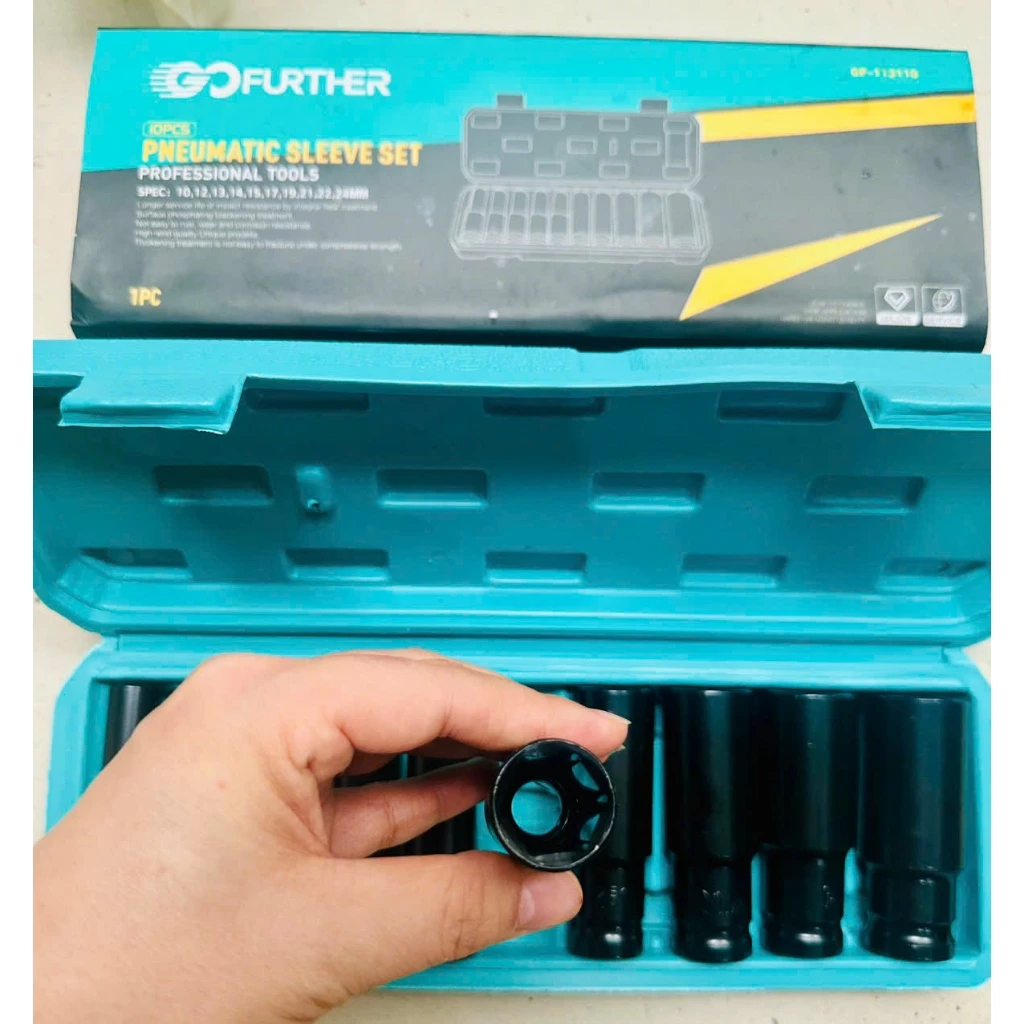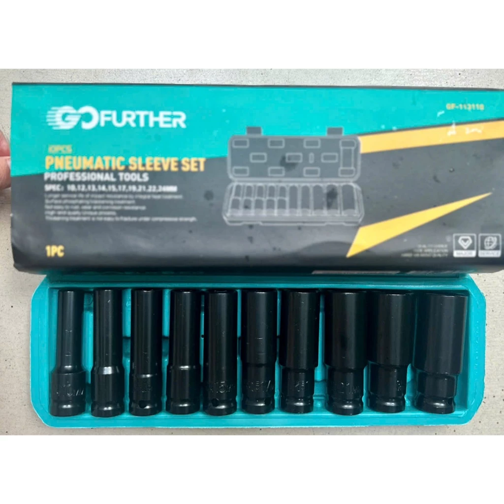Trang chủ » Sản phẩm » Phụ kiện máy khoan » Bộ 10 đầu khẩu, đầu tuýp 1/2 dài đen thương hiệu Gofuther